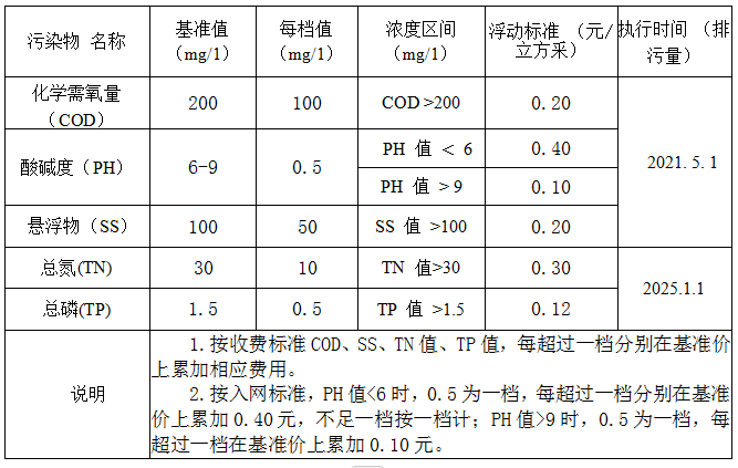 工业企业多因子收费标准