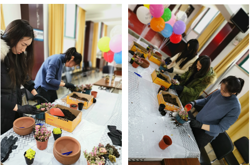 为迎接即将到来的2019年“三八”国际劳动妇女节,调动女职工工作积极性,丰富女职工生活,使广大女职工过上一个健康、和谐、快乐的“三八”妇女节。近日,恒通公司全体女职工与“小鲜肉”们来了一场“神秘”约会,拥抱春的“肉肉”,感受春的气息。 女职工们撸起袖子,带上手套,跟着园艺师从灌装填土、多肉种植、面层铺石到洒水定型,一步步完成多肉植物DIY制作,并将其带回办公室。每一个多肉盆栽“成品”形态各异,蠢萌可爱。