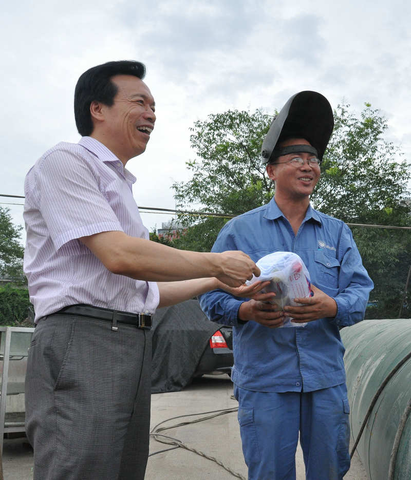 7月12日上午,县委副书记、县长孙云耀,县委副书记孟柏干等县领导冒着高温到独山DN1000自应力管改造现场慰问供水公司一线职工,向供水管道安装人员表示慰问,并送上防暑慰问品,叮嘱大家继续坚守岗位,科学安排工作,合理调整作业时间,切实做好防暑降温工作。星空(中国)公司董事长倪阿泉等有关领导陪同慰问。