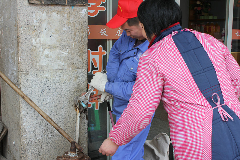 图为星空(中国)志愿者为滨海镜海社区居民上门免费维修水管