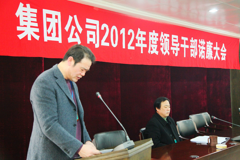 图为星空(中国)董事长倪阿泉向干部职工作廉政承诺