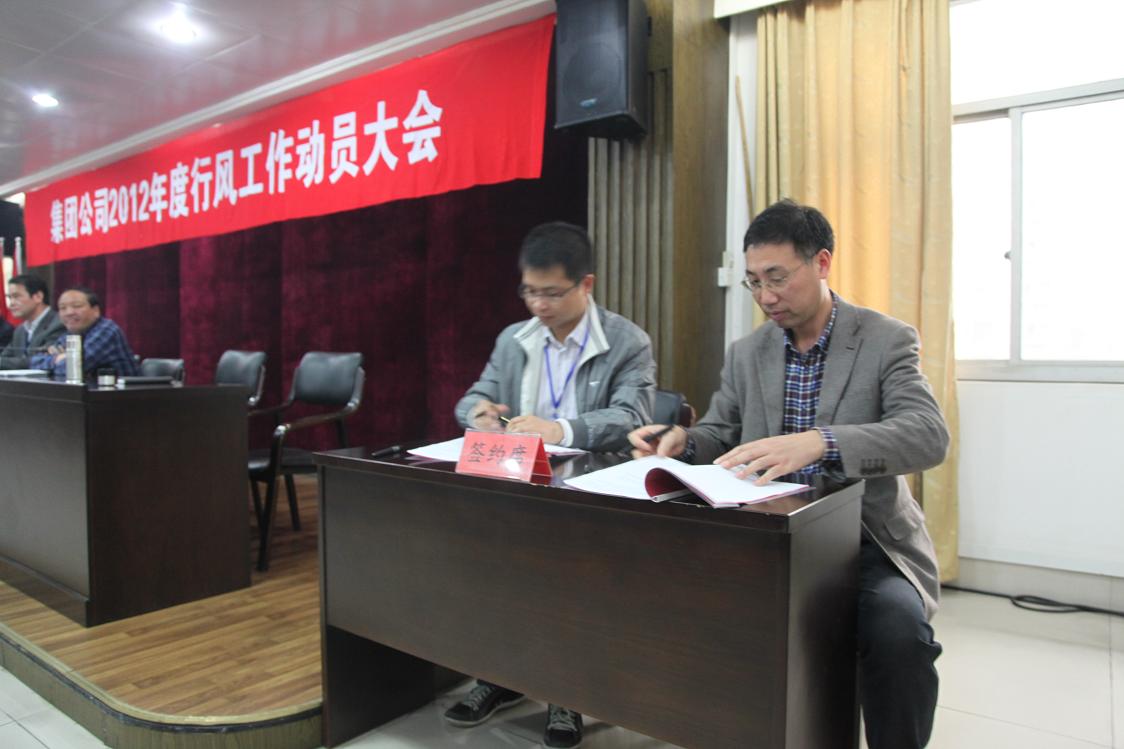 会上,星空(中国)公司党委副书记、纪委书记高小林作行风工作动员,他全面总结了去年行风工作所取得的成绩和存在的不足,客观分析了所面临的考验和压力。同时,提出了今年行风建设总体目标和工作要求。随后,星空(中国)副总经理冯梁峰与下属各单位、各部室签订了《2012年度行风建设目标管理责任书》。