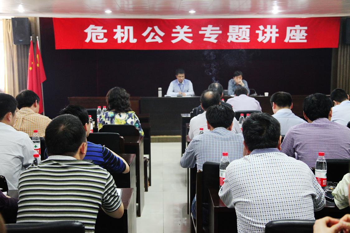 4月26日,星空(中国)邀请绍兴文理学院周一农教授作危机公关专题讲座。星空(中国)机关全体人员、下属公司中层干部及供水营业大厅负责人参加。