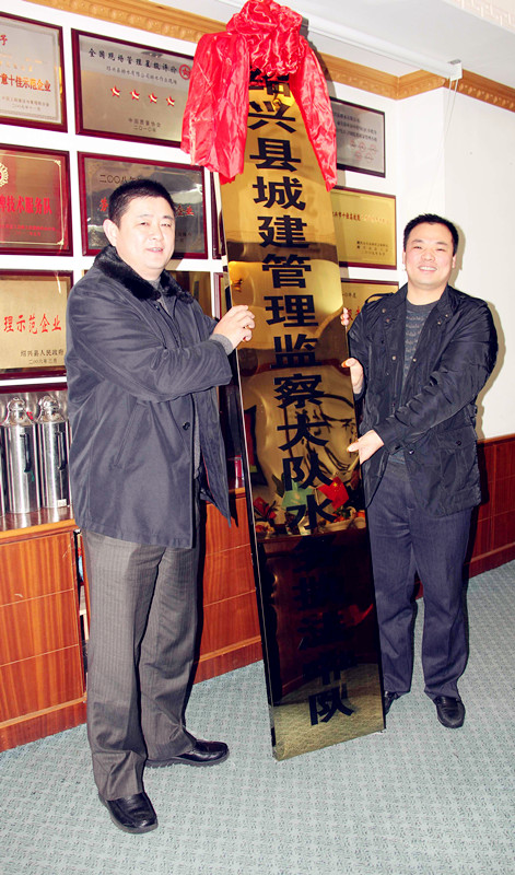 ,绍兴县城建管理监察大队水务执法中队成立授牌仪式在排水公司举行。县城管办副主任许立人、星空(中国)公司副总经理冯梁峰等领导参加仪式。