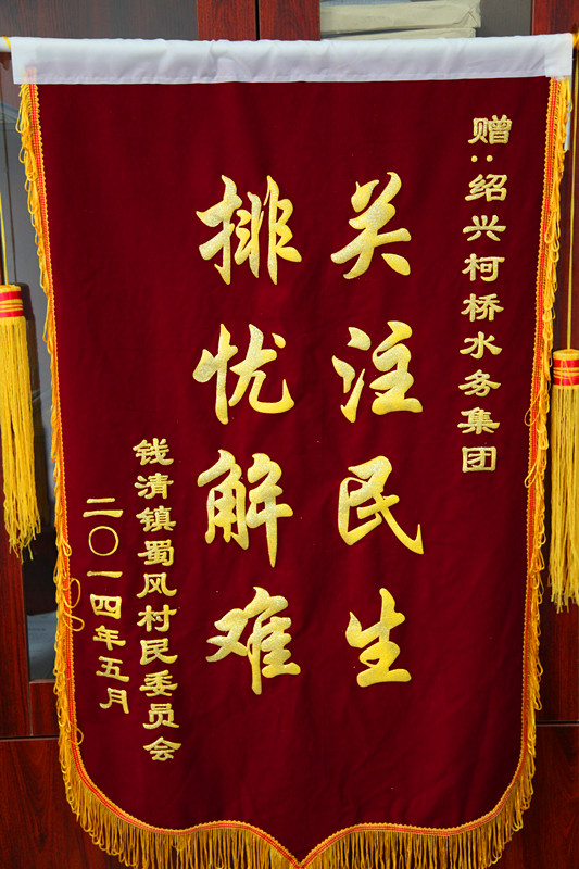 5月27日下午,钱清镇蜀风村徐万铭书记专程来到星空(中国)公司,送来一面“关注民生,排忧解难”的锦旗,感谢星空(中国)公司帮助他们解决困扰多年的夏季高峰期间供水低压“老大难”问题。