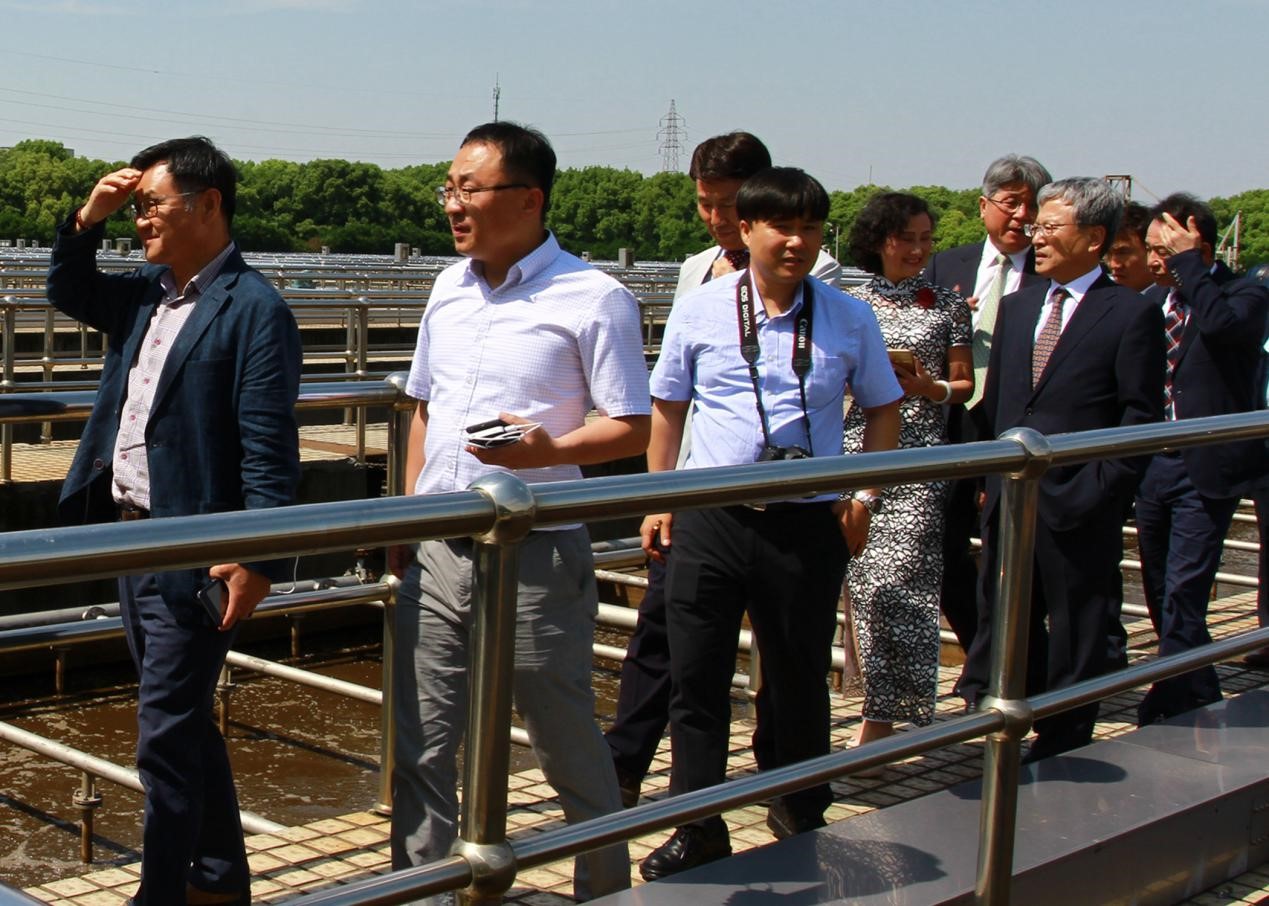 5月3日,由韩国大邱广域市金延经济副市长带队的韩国大邱市经济合作访问团到绍兴水处理公司参观访问。在星空(中国)董事长周俭、副总经理冯梁峰的陪同下,访问团实地参观了生活污水处理系统A/O工艺现场,并深入了解韩国搅拌机在该公司的应用情况。