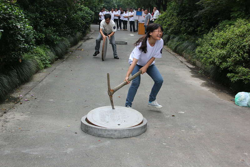 图为更换窨井盖比赛