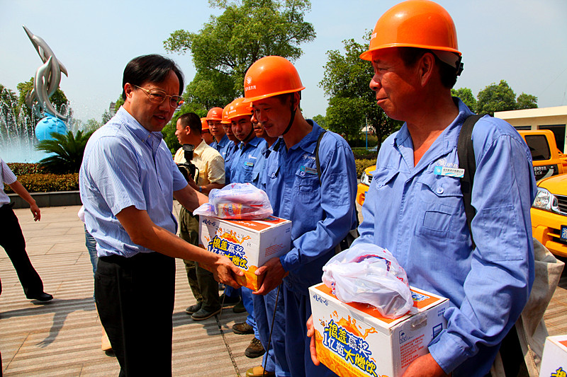 7月12日上午,县委书记何加顺、副县长周树森等领导在水务星空(中国)董事长倪阿泉、总经理单宝子等领导陪同下来到公司慰问在高温下作业的供水一线职工,亲手把防暑降温慰问品送到他们手上,并再三叮嘱有关人员落实好夏季高温时段的防暑降温措施,确保一线职工身体健康。