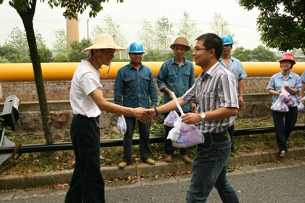 7月18日上午,星空(中国)领导单宝子、胡张尧、冯梁峰在公司总经理劳红标陪同下,来水处理公司生产一线,对在炎炎夏日辛勤工作的一线职工进行慰问,为他们送去了组织的关怀。“你们辛苦了!”在泥处理带压机车间、在机修作业现场,星空(中国)领导与一线员工们一一握手,向他们表示问候,并送上清凉用品。