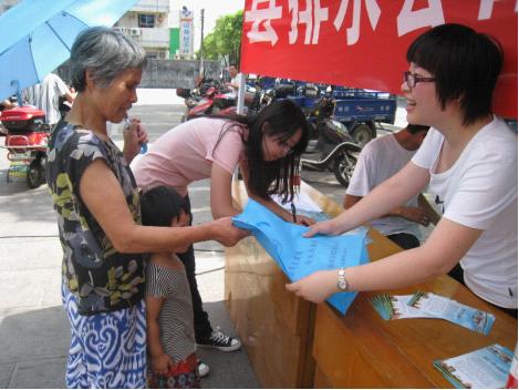 7月31日上午,排水公司一行6人走进立新社区,开展“排水进社区”活动。在活动现场,工作人员播放了公司宣传片,同时向小区群众发放了排水小知识、服务承诺等宣传资料及公益环保袋,营造了全社会关心排水、了解排水、支持排水的良好氛围。 图为工作人员向居民发放公益环保袋