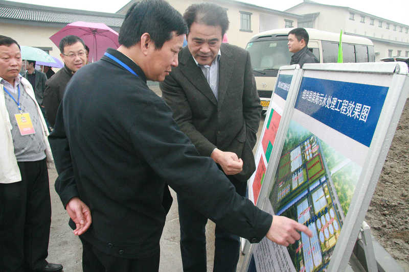 上午,由县政协主席孟柏干带队的视察组冒雨视察污水集中预处理工程(一期),星空(中国)董事长倪阿泉陪同。