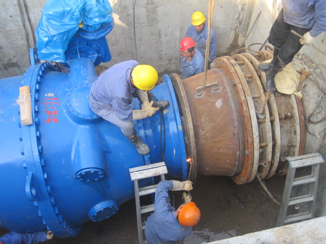 凤凰山泵站原DN1400阀门,因使用时间长,部分零部件损坏,导致电动操控失灵,手动关闭困难,安全隐患较大,经公司领导研究决定,由安装分公司负责对此处阀门进行更换,并安装调流阀。该调流阀的成功安装,将方便小舜江一期总管水压及流量的调控,为应对今年高峰供水做好了准备工作。