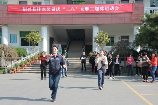 星期六上午,排水公司大院欢声笑语阵阵传来,加油声、呐喊声起伏不断。排水公司”三八”女职工趣味运动会在节日的喜庆中如火如荼地召开了。50多名女职工代表参加了这次运动会。4人