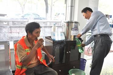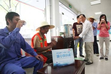 为进一步树立公司良好的社会服务形象,绍兴县供水有限公司积极响应浙江之声广播电台的倡议,86日起,在柯桥城区、福全镇、安昌镇、钱清镇等16个供水营业大厅开展“一杯水”大型公益活动,为户外高温工作者免费提供饮用水和短暂休憩场所。