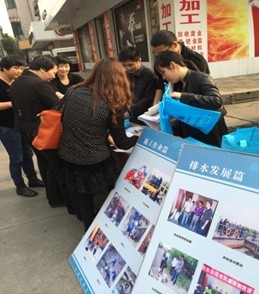 为配合小区污水管网改造工程项目,3月27日,公司组织人员在钱清永通花园、华清住商楼门口设摊宣传,热情地向居民介绍“五水共治,治污先行”方针政策,倡导居民对乱排放、违规排放的行为进行监督,让居民意识到即将动工的雨污分流小区是一项优环境惠民生的工程。 本次排水进社区活动共发放宣传册110余份,收集建议12条,大大提高了居民对生活污水治理的关注度以及认可度。