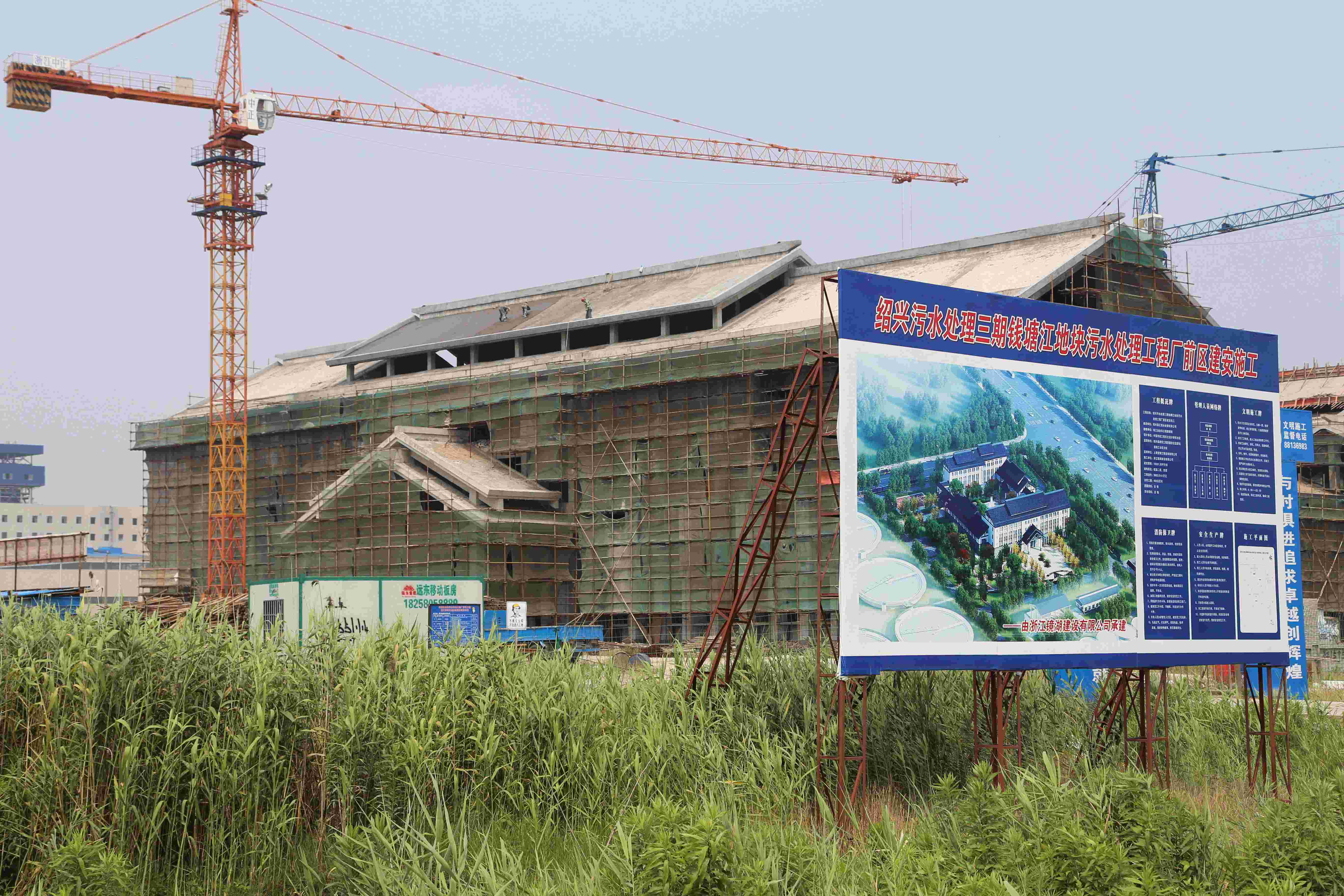 钱塘江地块污水处理工程厂前区工程主体结顶