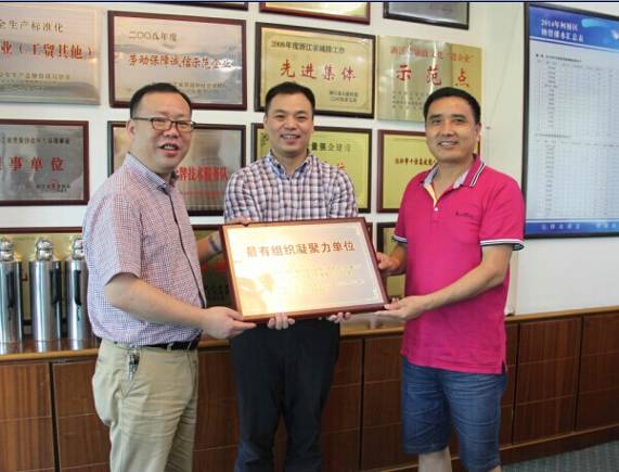 公司荣获浙江省“最有组织凝聚力单位”称号