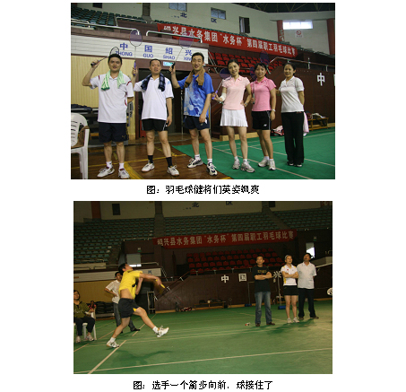 为宣扬企业文化,提倡“快乐工作、健康工作”,增进青年职工的团队协作意识,增进同事之间的默契度,拉近跨部门业务的操作距离,2010年5月22日,水务星空(中国)团委在绍兴市城东体育馆举办了第四届“水务杯”羽毛球比赛。